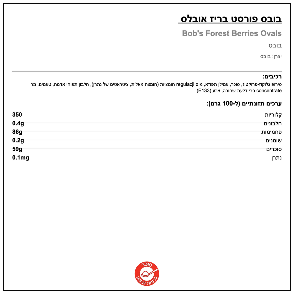 Bubs Oval Sour Berries באבס סוכריות גומי חמוצות טבעוניות