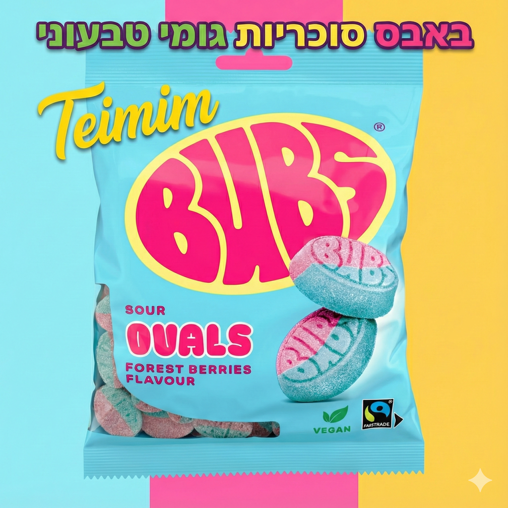 Bubs Oval Sour Berries באבס סוכריות גומי חמוצות טבעוניות