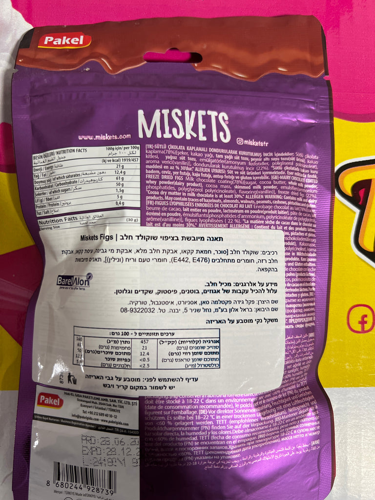 Miskets FIG slices Milk Chocolate פריז דריי תאנים מצופים שוקולד חלב