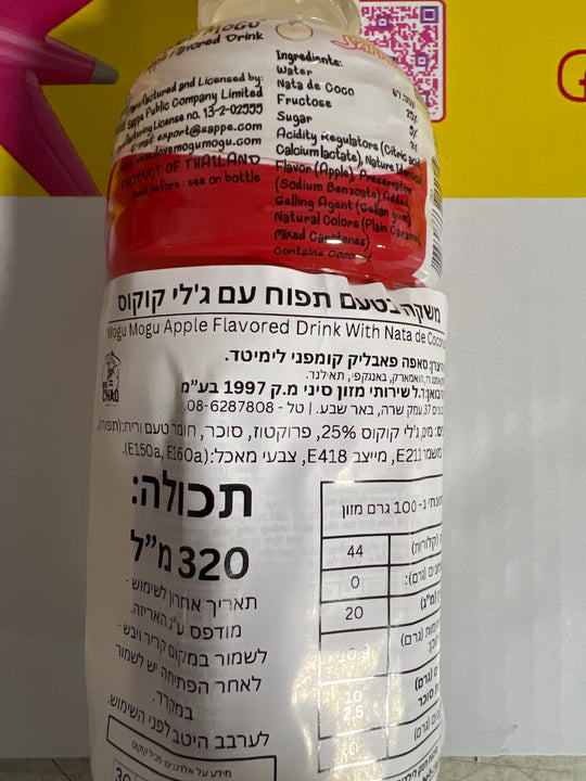 Mogu Mogu Apple משקה בטעם תפוח עם חתיכות ג'ל קוקוס