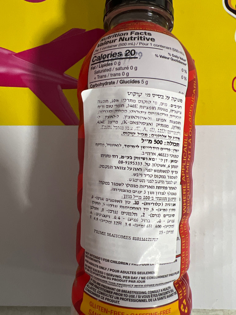 Prime Mahomes משקה פריים איזוטוני מאהומס פטריק בטעם קוקוס עדין